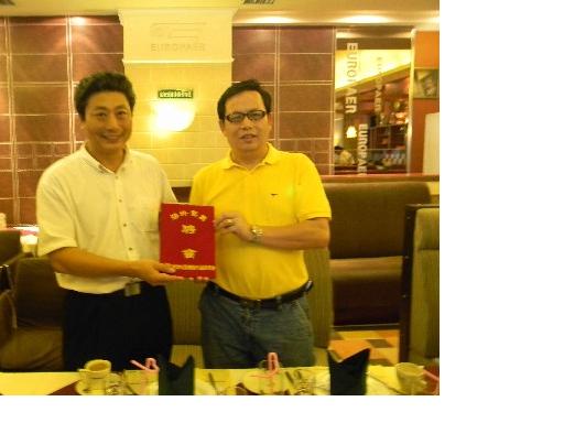 陈振贵副主席被辽宁省侨联聘为海外委员由王之峰主席颁发聘书和鲜花合影留念
