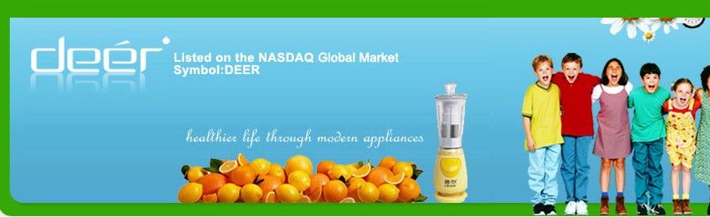 睿能集团(Smartheat Inc.)是一家在美国纳斯达克上市的美国独资公司(股票代码HEAT),睿能集团是一家提供高品质能源设备、技术和能源解决方案的集团公司,主要业务涉及换热设备在电力、冶金、石油化工、食品、制药、暖通空调、船舶及造纸等各个工业领域的运用。为了更好地服务于中国地区的客户,睿能集团投资于中国沈阳太宇机电设备有限公司、桑德克斯板式换热器(上海)有限公司和睿能(四平)北方能源技术有限公司,主要产品有板式换热器、板式换热机组、管壳式换热器、螺旋板式换热器、空气冷却器、全自动换热机组、橡胶密封垫片和热能表及其检测装置等,这三家工厂在睿能集团统一的质量标准下为客户提供一如既往的高品质产品和服务,视客户的需求为己任。 睿能集团一直致力于为客户提供卓越的能源服务解决方案。公司设计并制造的睿能集团系列换热产品能够满足各行业对热交换的需要,应用范围广泛,技术力量雄厚,针对不同行业的工艺流程及工况要求,睿能集团能够提供具有行业针对性的解决方案及产品。 睿能集团的换热产品品质精良,质量始终保持着世界一流的水准,总能满足每一位客户苛刻而严格的使用要求。 具有技术创新的优良传统,这一传统推动着睿能集团成为并保持着换热业界一流领导者的水准,并时刻提醒着我们视客户的需要为已任。作为全球领先的节能产品与服务供应商,睿能集团追求卓越的客户响应,我们承诺为每一位客户提供最佳的产品和服务,并将其视为我们前进的动力和责任。遍布中国的销售和服务网络体系将我们的产品送往中国的每一个角落。我们努力与客户共同成长。 高科技热能转换设备制造业; 代理该公司从OTCBB 柜台示板升板至纳斯达克资本市场,并在短短一个半月内成功转板至纳斯达克全球市场。我们为该公司成为2009 年第一家在纳斯达克上市的中国公司。 >>>> 详细介绍 5. Deer Consumer Products, Inc. (深圳)(纳斯达克资本市场: DEER) http://www.deerinc.com/