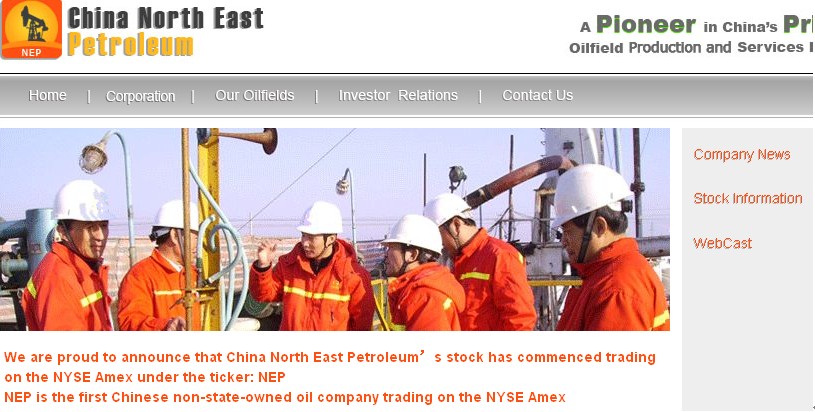 电器生产制造业; 2009年 6 月下旬我们为DEER公司递交申请,7月下旬成功上市至纳斯达克资本市场。 2009年10月21日 19:19 纽约, 10月21日 /美通社-PR Newswire: 生产面向全球和中国国内消费者营销的家用和厨房电子产品的全球最大制造商 Deer Consumer Products, Inc.今天宣布,该公司已经获批在纳斯达克全球市场上市其普通股,较之前在纳斯达克资本市场上市有所升级,该升级从2009年10月22日起生效。该公司的股票代码仍然是“DEER”。 DEER 相信 NASDAQ Global Market 更高且更严格的上市要求能够显著拓展其机构股东群,并使 DEER 实现广泛的机构参与和拥有制。 最近,DEER 将2009年盈余预测上调至约8100万美元营收和1050万美元净盈余。2008年,DEER 宣布经美国公认会计准则 (GAAP) 审计的营收为4380万美元,净盈余为340万美元。 >>>> 详细介绍 6. 中国东北石油控股有限公司 China North East Petroleum Holdings Ltd. (吉林)(AMEX: NEP) http://www.cnepetroleum.com/