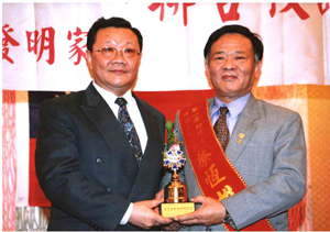 政府官员 接见蔡恒雄理事长并颁发发明奖披彩