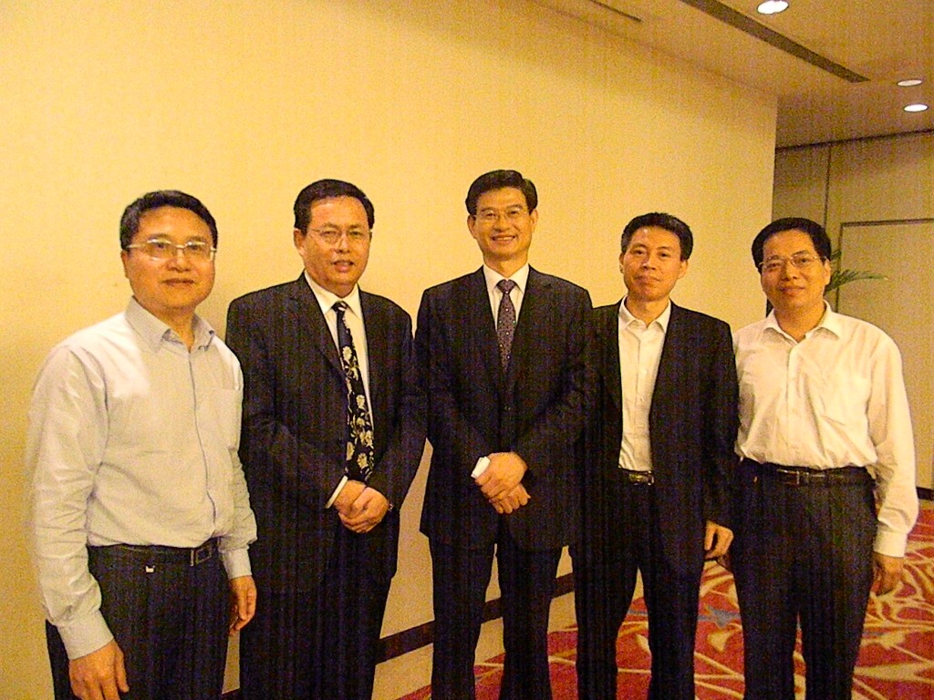 陈董事长与福建省侨办刘良辉副主任、江作栋处长、田治颖副市长及福州市工商联林升副主席合影留念